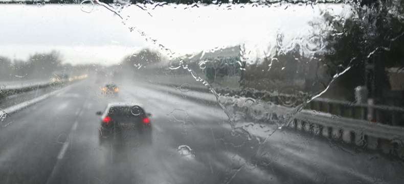 Avant toute chose, pensez à vérifier l’état de vos pneumatiques. Rouler avec des pneus trop lisses en cas de fortes pluies réduit l’adhérence sur la chaussée et accentue les risques d’aquaplaning et de sortie de route. Réduisez votre vitesse et augmentez un peu plus la distance avec le véhicule qui vous précède : si vous êtes amené à freiner brusquement, la distance pour vous arrêter augmente sur une chaussée détrempée. Dans certains cas, et si la visibilité est mauvaise, vous pouvez actionner vos feux antibrouillard avant (n’oubliez pas de les éteindre lorsque la visibilité redevient normale, afin de ne pas éblouir les autres conducteurs). En cas d’orage très violent (fortes pluies, visibilité très réduite…), ne vous immobilisez pas sur la bande d’arrêt d’urgence mais arrêtez-vous sur la première aire pour attendre la fin du phénomène.